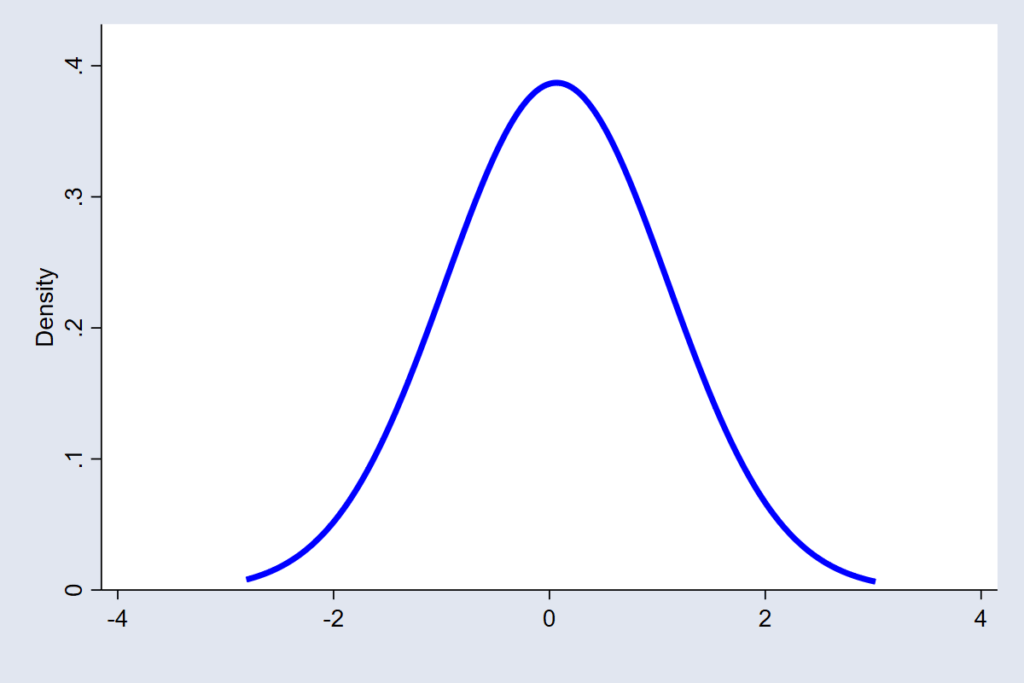 The Normal distribution is the one most people recognize. It assumes the errors are continuous, symmetric, and mostly small, with extreme errors being very rare. It’s the model’s way of saying, “Most of the time, I’m close to the mark, and big misses hardly ever happen.” This works well for many economic, social, and behavioral data, where variation tends to be moderate and balanced (see figure 1).